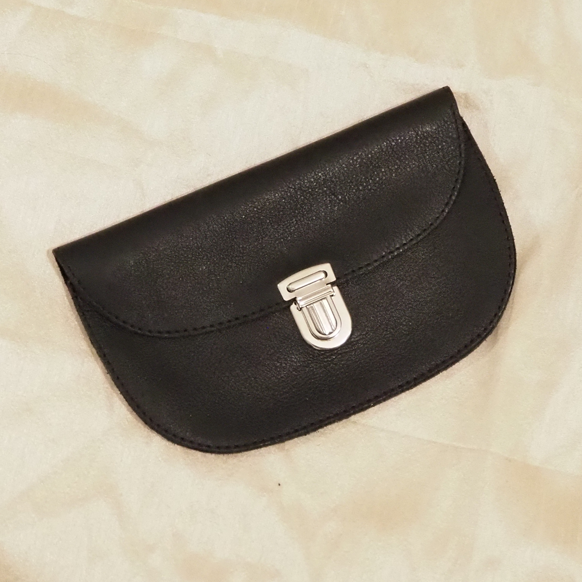 espanjalaista lehmännahkaa. Kiinnikkeenä toimii tukeva laukkulukko.