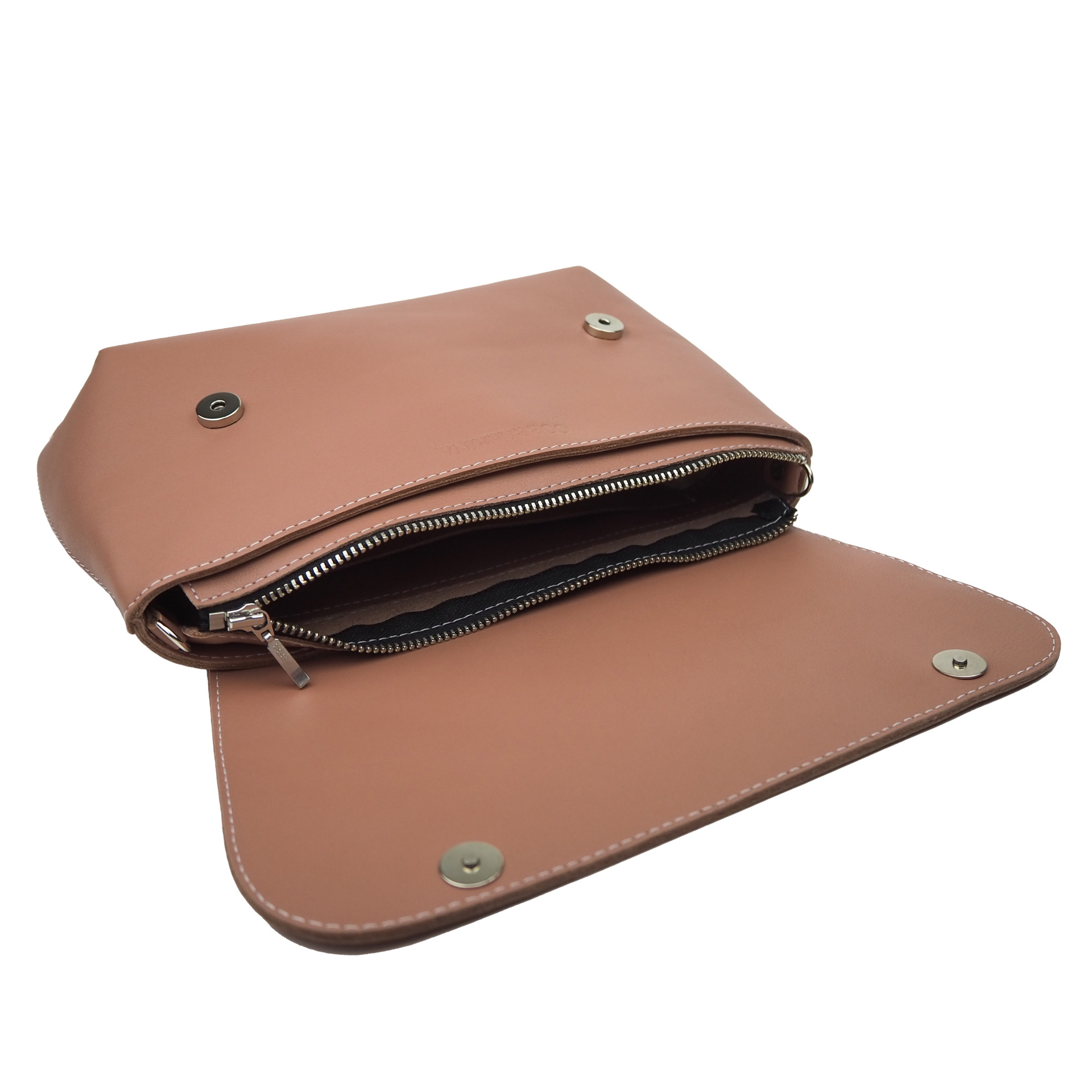 ja se vaihtelee laukun värin mukaan. Laukun sisältä löytyy pieni nahkainen tasku. Kiinnikkeenä