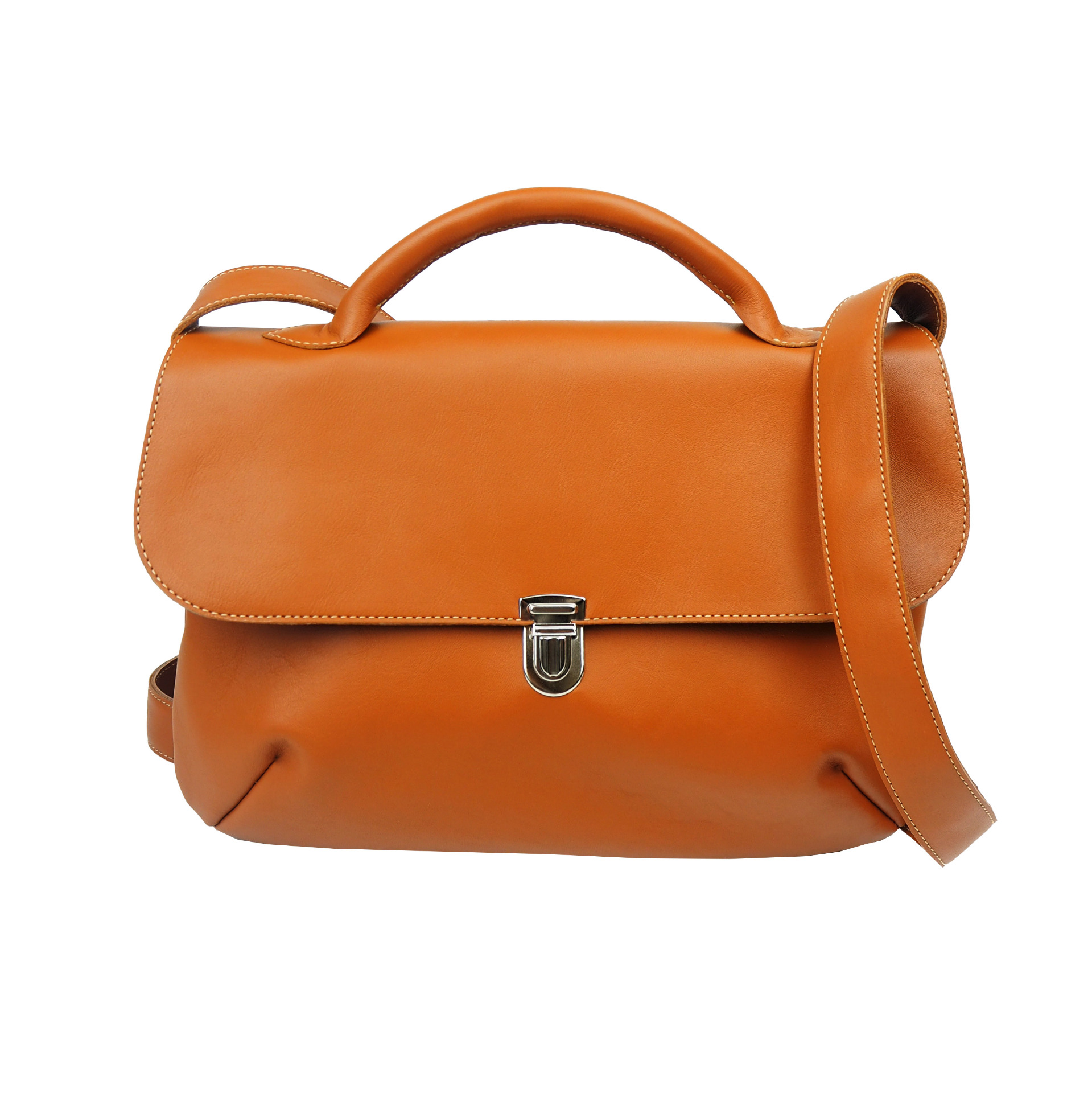 löytyy nahkainen tasku. Laukussa on ommeltu paksu nahkainen olkahihna,